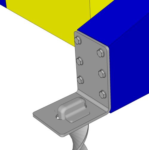 1 / Fastgør T505-beslaget til springet ved hjælp af bolte eller store skruer. Beslagene har 6 huller, men ofte er 3 eller 4 bolte eller skruer nok.2 / Når springet er på plads på banen, slås ankeret igennem spalten i beslaget. Ankeret vil rotere og skære en nøjagtig fuge i jorden.